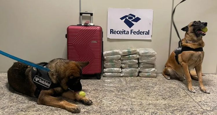 A mala foi selecionada pela equipe da Receita Federal após suspeita dos agentes. Os cães de faro da Equipe K9, Deco e Odin, indicaram a presença de drogas na bagagem, o que foi confirmado depois do uso do escâner e da verificação física.