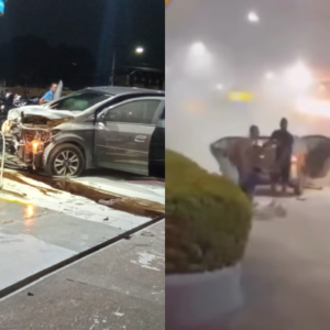 Durante perseguição policial, assaltantes sofrem acidente e explodem bomba de gasolina em Manaus