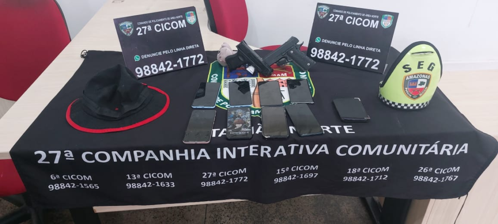 Manaus – Minorivandro Silva de Almeida, 25, Alailson Feitosa de Noronha, 30, e Victor Gabriel Oliveira, 18, foram presos em flagrante por roubo majorado na tarde desta quarta-feira (24). A prisão do trio ocorreu na avenida Aurélio Pinheiro, no Novo Aleixo, zona norte de Manaus. De acordo com policiais militares da 27ª Companhia Interativa Comunitária (Cicom), os suspeitos fizeram um arrastão na zona norte da capital. Em fuga pela avenida Camapuã, na mesma região, os criminosos foram encontrados pelos PMs. O trio conduzia um carro de modelo Kwid, de cor prata e placas QZL-5F43. Eles ainda tentaram fugir, mas foram alcançados pelos militares. Com os bandidos a polícia apreendeu duas armas falsas e celulares roubados. O caso foi apresentado no 6º Distrito Integrado de Polícia (DIP), na Cidade Nova.