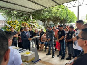 Foi enterrado na tarde deste domingo (4), no cemitério Nossa Senhora Aparecida, no Tarumã, zona oeste de Manaus, o corpo do cabo da Polícia Militar do Amazonas Robert Bruno Moreira Farias, morto em uma troca de tiros com dois sargentos da Marinha do Brasil na manhã de sábado (3). O crime ocorreu na saída de uma boate na rua Barão de Indaiá, no bairro Parque das Laranjeiras, zona centro-sul de Manaus.