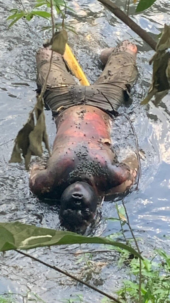 Equipe do Corpo de Bombeiro Militar do Amazonas (CBM-AM) foi acionada para auxiliar o resgate do corpo no igarapé.