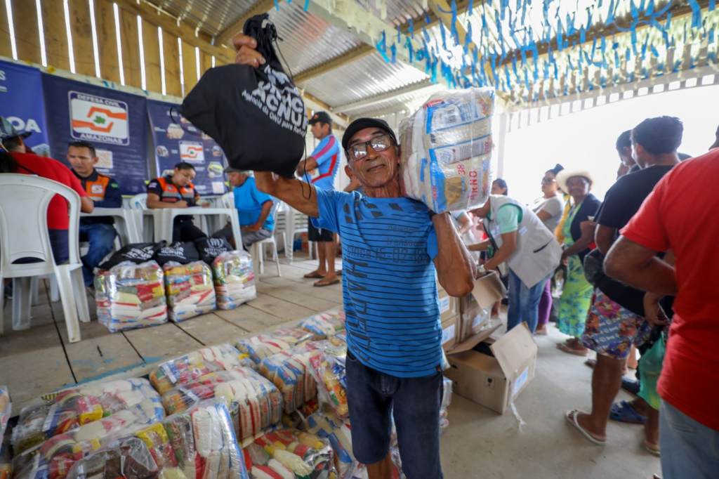 Nesse período, o Governo Estadual, por meio da Defesa Civil do Amazonas, entregou 95.855 cestas básicas, o que equivalente a 1.802 toneladas de alimentos não perecíveis que foram destinados aos ribeirinhos dos lugares mais longínquos do estado.