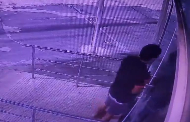As imagens mostram o suspeito forçando a porta até quebrá-la. Depois de entrar no estabelecimento, ele furtou diversos produtos antes de fugir.